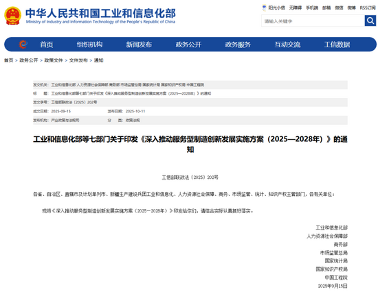 2025-10-17近日,工业和信息化部等七部门印发《深入推动服务型制造创新发展实施方案(2025—2028年)》(以下简称《实施方案》)。《实施方案》提出,加强新型信息基础设施建设,深化“5G...